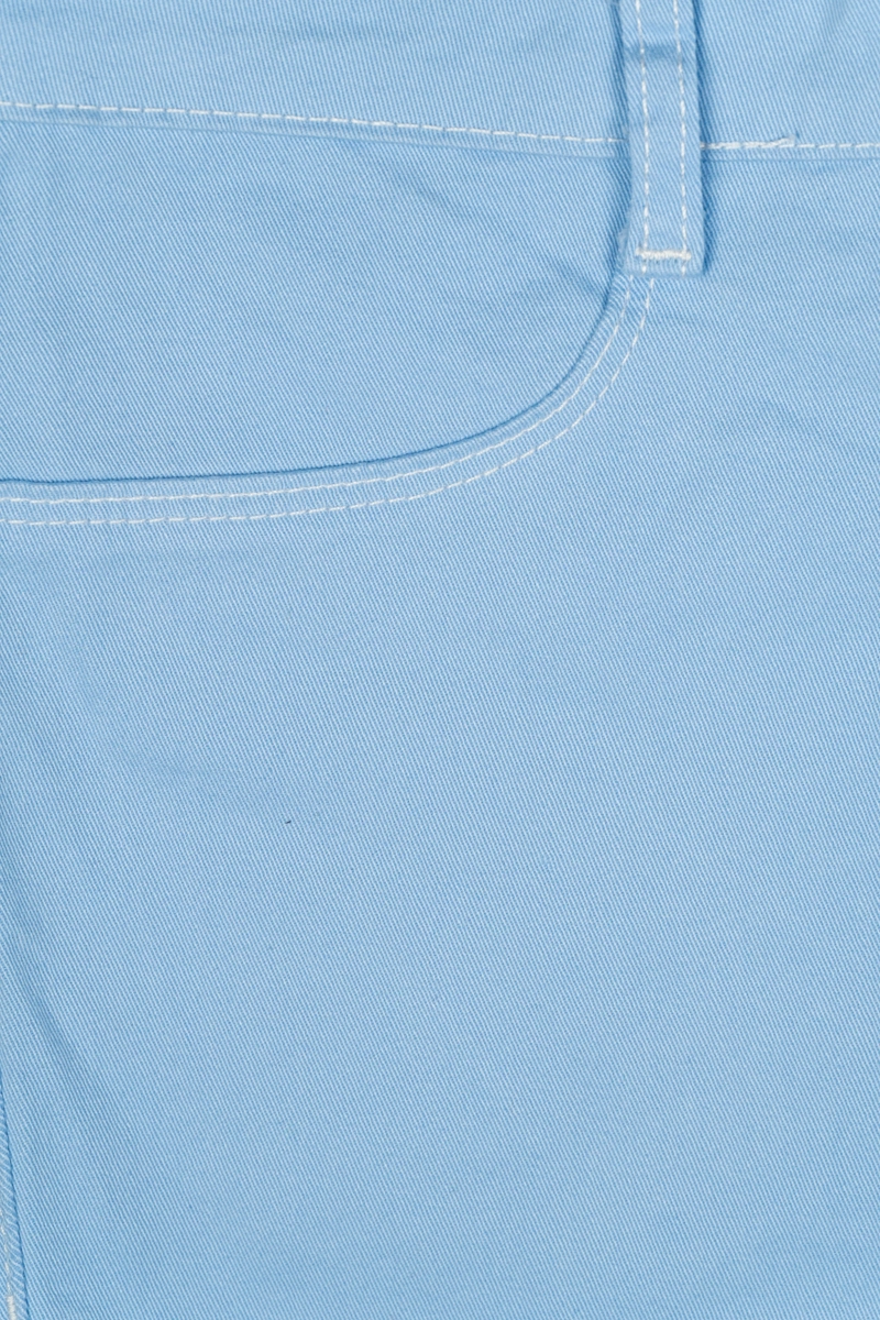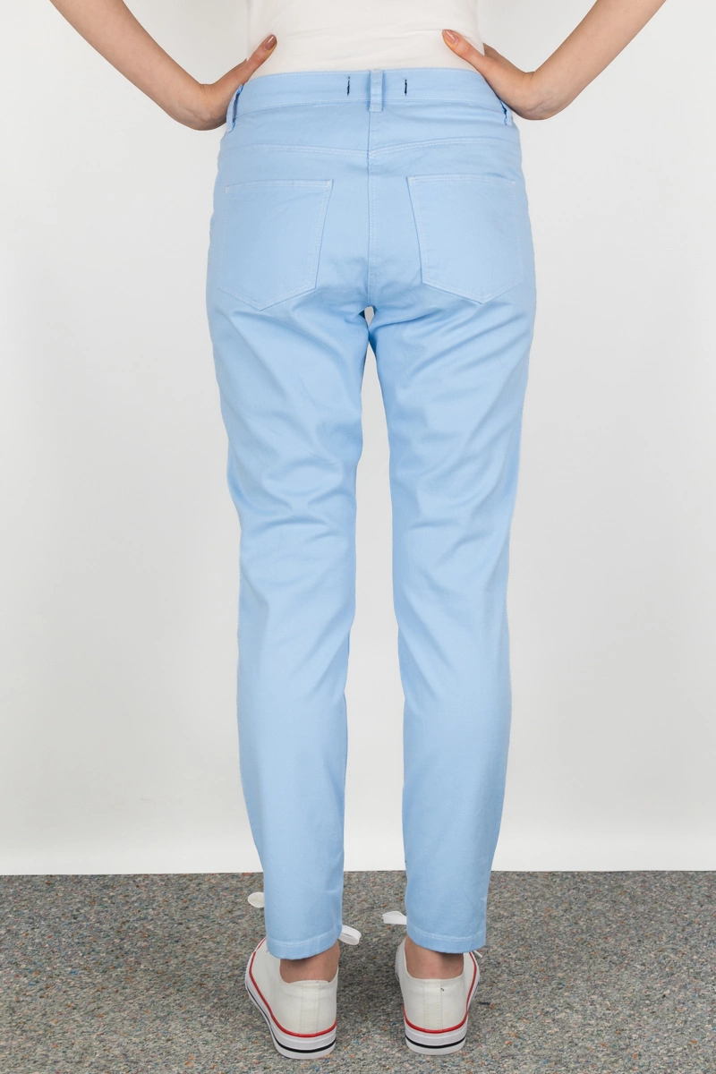 Spodnie firmy Aeropostale w odcieniu błękitnym. Wykonane z lekkiej, bawełnianej tkaniny z dodatkiem konopi (18%). W pasie szlufki. Chinosy zapinane na guzik i kryty, błękitny zamek błyskawiczny. Z przodu imitacje kieszeni. Z tyłu dwie kieszenie. Wysokość stanu - średni. Nogawki zwężane. Materiał miły w dotyku.