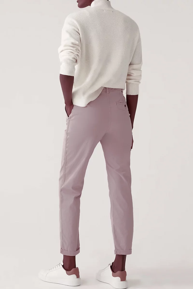 Bawełniane Lekkie Liliowe Spodnie Chino Slim Fit, Long