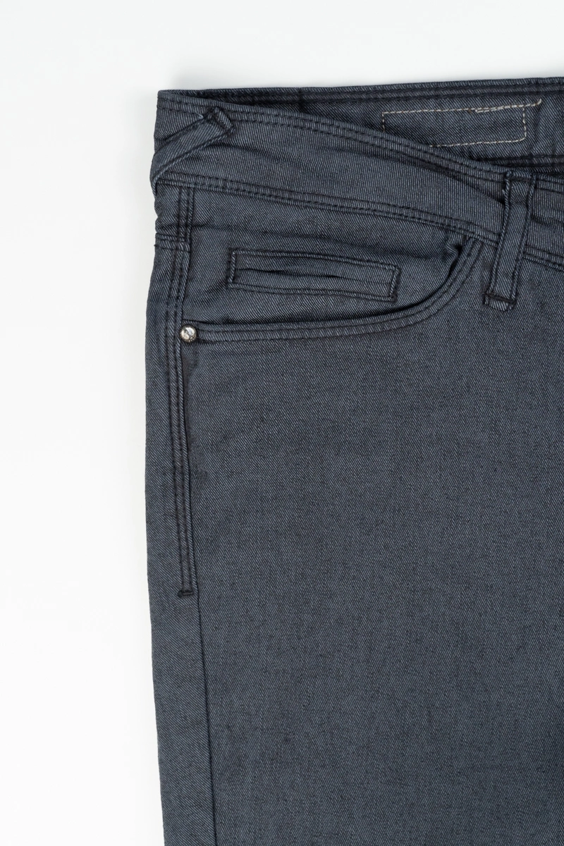 Jeansy marki Bershka w odcieniu grafitowym. Model Super Skinny (na szczupłą nogę). Zapinane na guzik i zamek. Wysokość stanu - niska. Dwie kieszenie z przodu i jedna mała z lamówką oraz dwie kieszenie z tyłu. W pasie szlufki. Kontrastowe, czarne szwy.