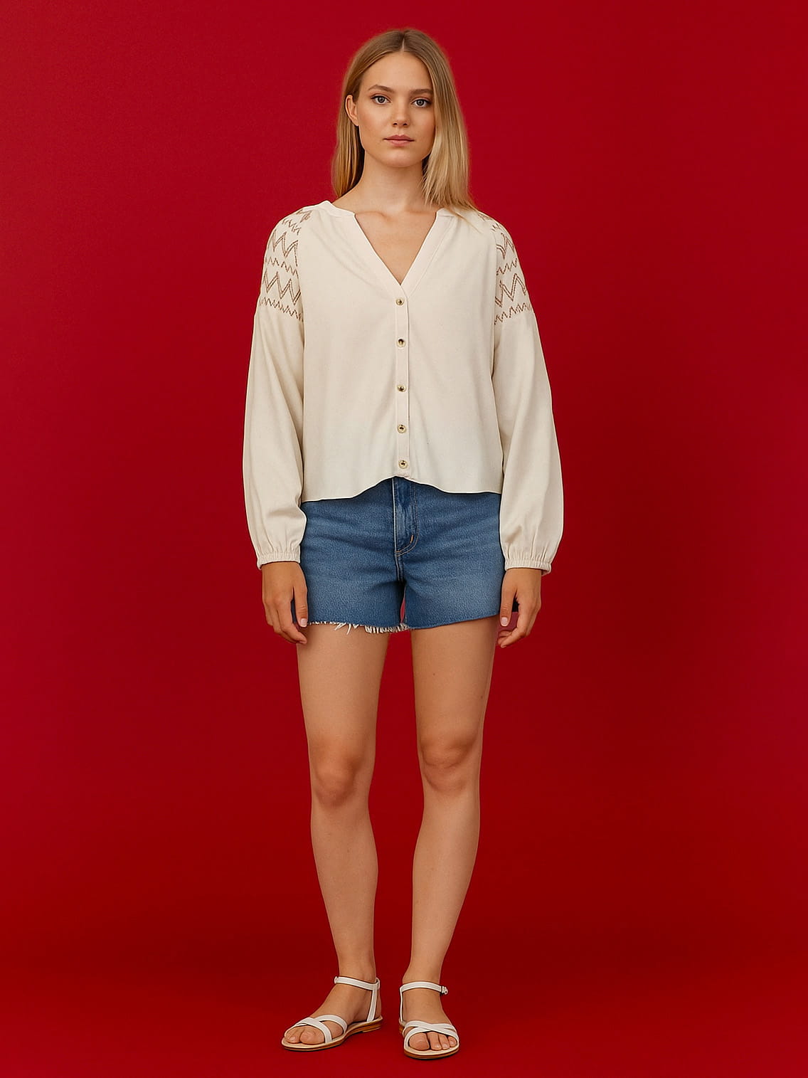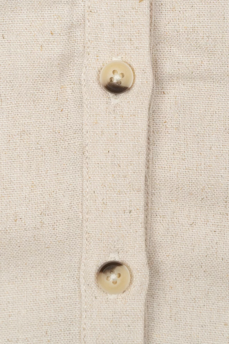 Beżowa Koszula z Haftem, Guziki, Len