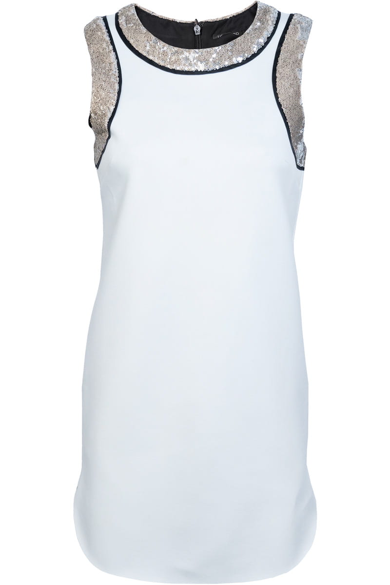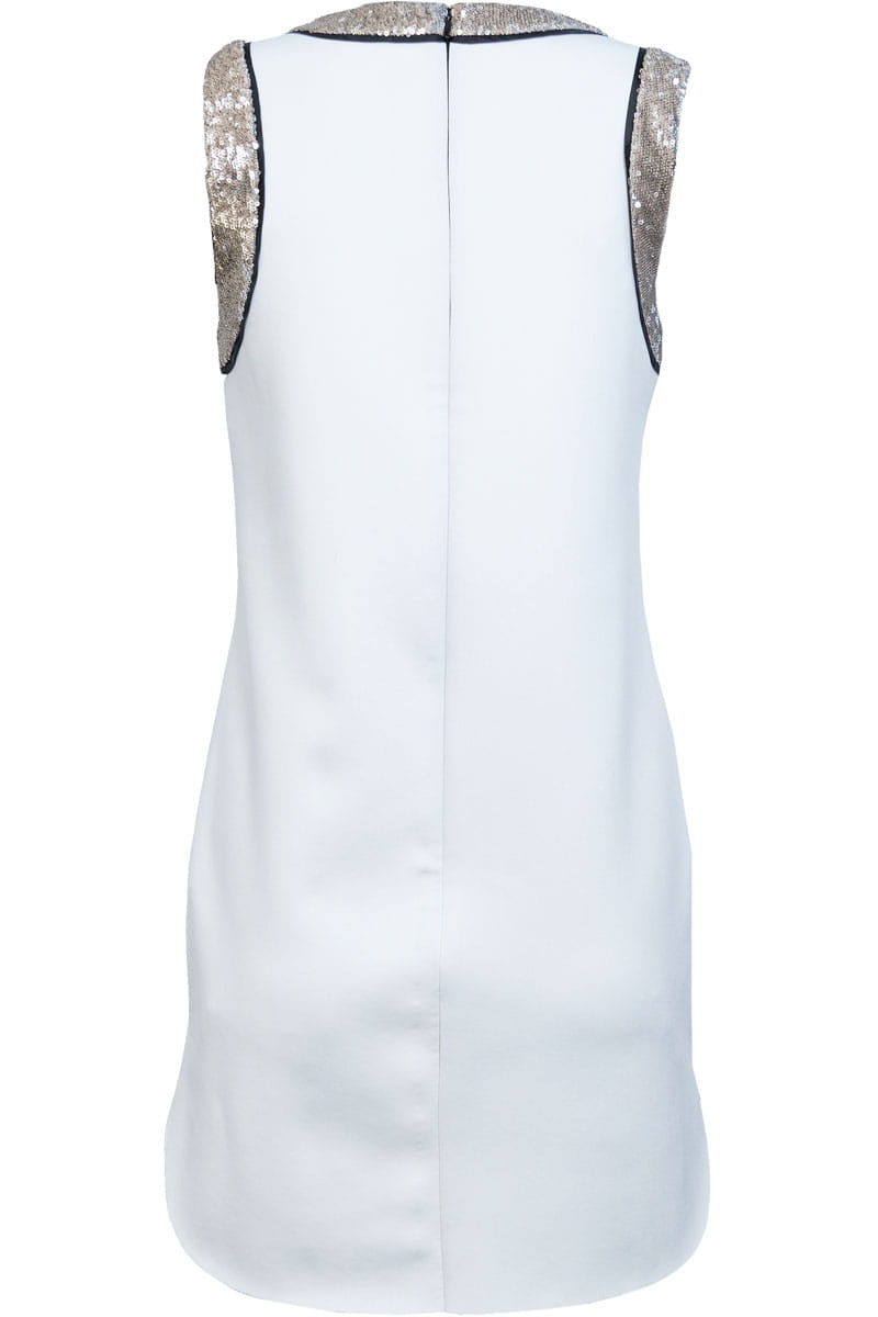 Sukienka / Tunika firmy TopShop w odcieniu białym. Dekolt i ramiona zdobione złotymi cekinami. Z tyłu zapinana na kryty zamek. Materiał wysokogatunkowy.