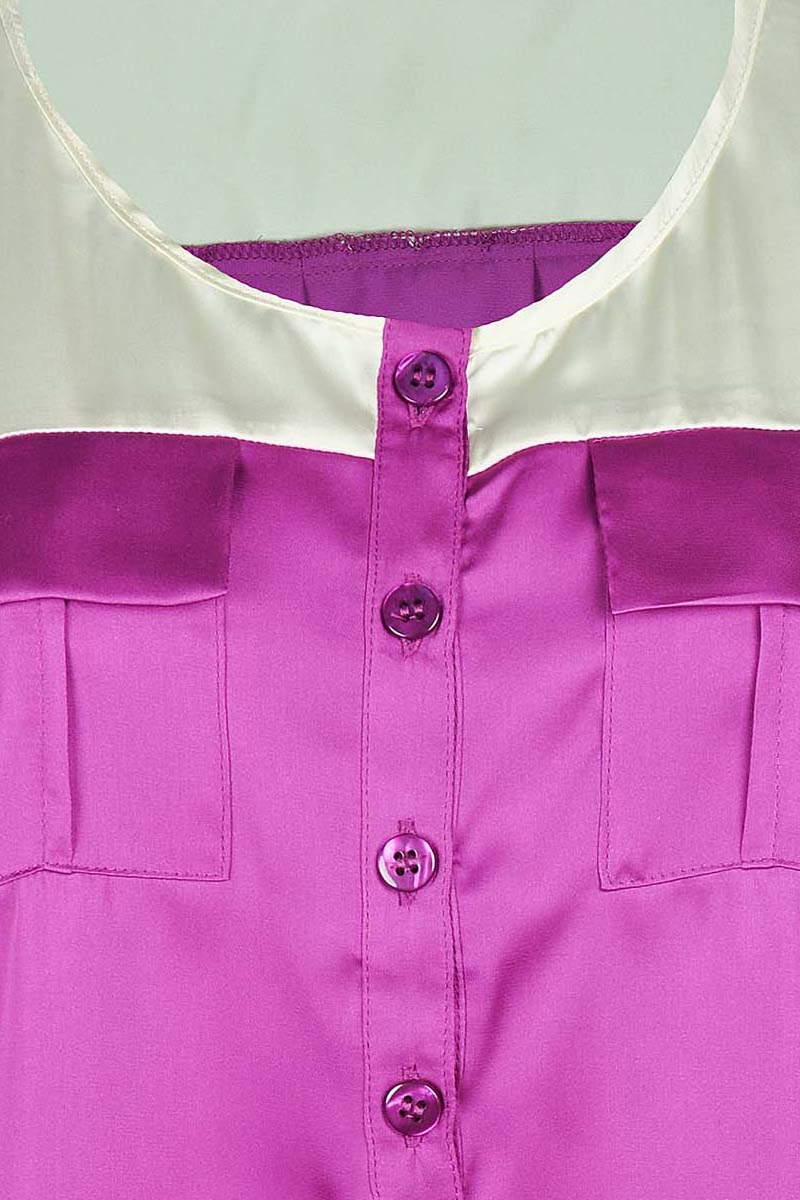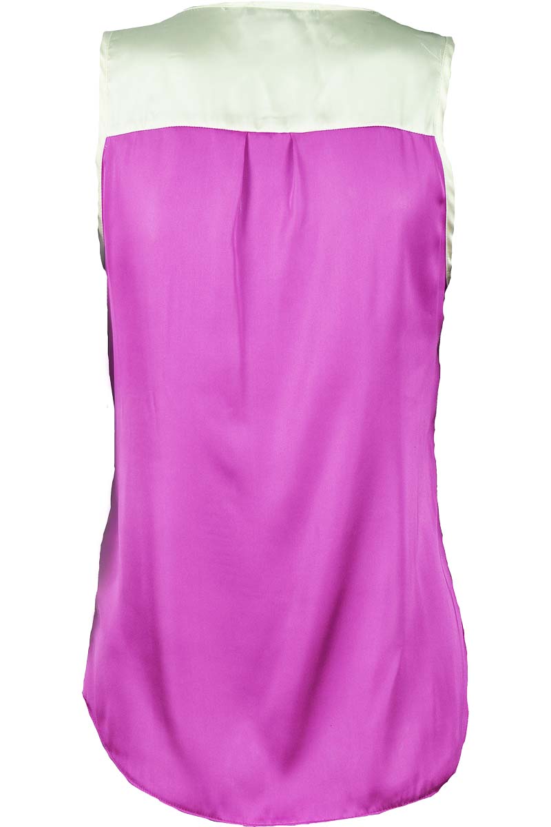 Bluzka firmy Jane Norman w odcieniu fuksji, góra w odcieniu kremowym. Bluzka na grubych ramiączkach, z przodu zapinana na guziki. Z przodu imitacje kieszeni. Asymetryczna-o dłuższym tyle. Bluzka o ciekawym, oryginalnym wyglądzie. Z kompletem firmowych metek.