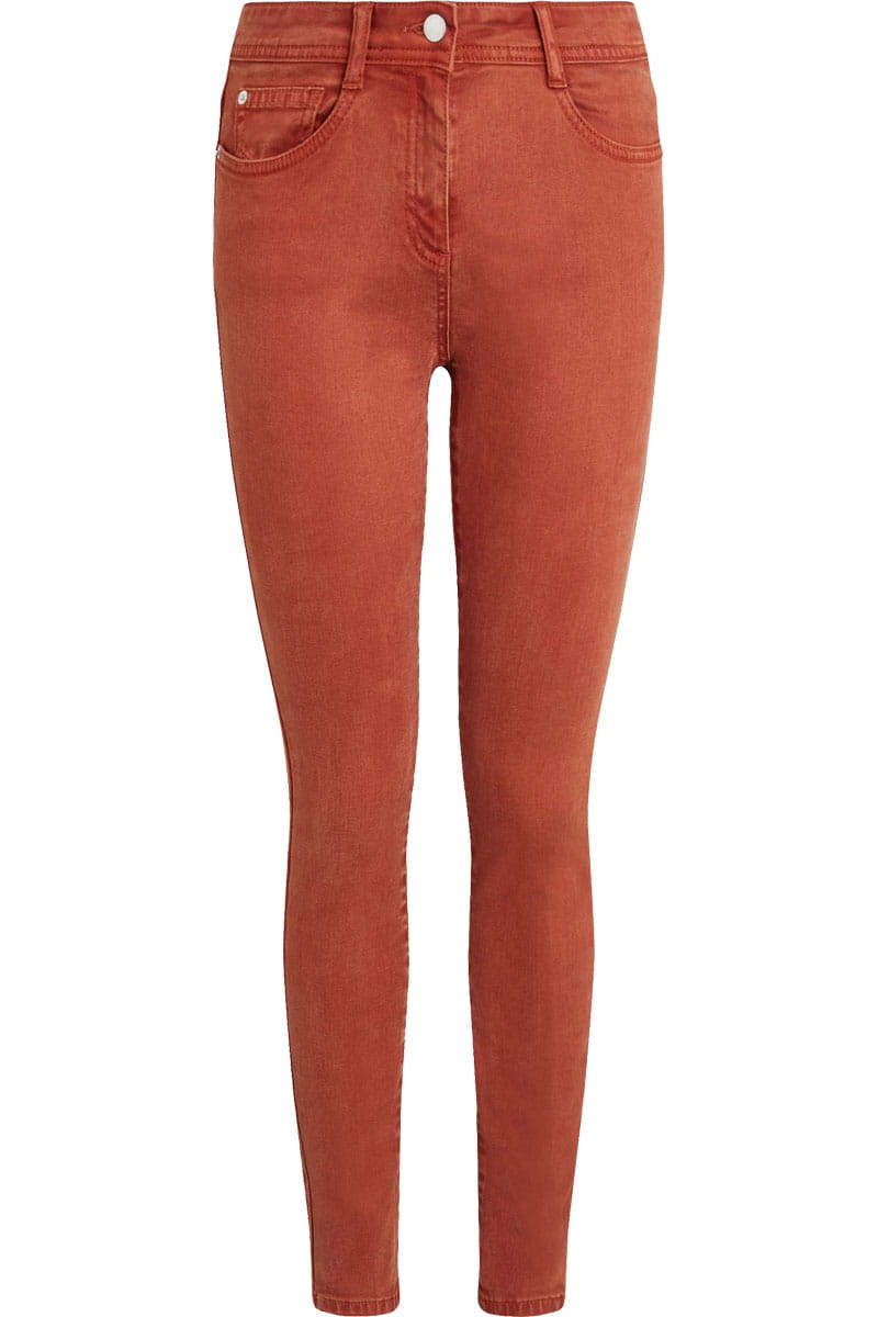 Jeansy marki Next w odcieniu brązowym. Model soft touch skinny. Długość Petite. Zapinane na zamek i guzik. W pasie wszyte szlufki. Z przodu posiadają dwie duże kieszenie i jedną małą oraz dwie kieszenie z tyłu. Spodnie o średnim stanie. Materiał miły w dotyku i wysokogatunkowy.