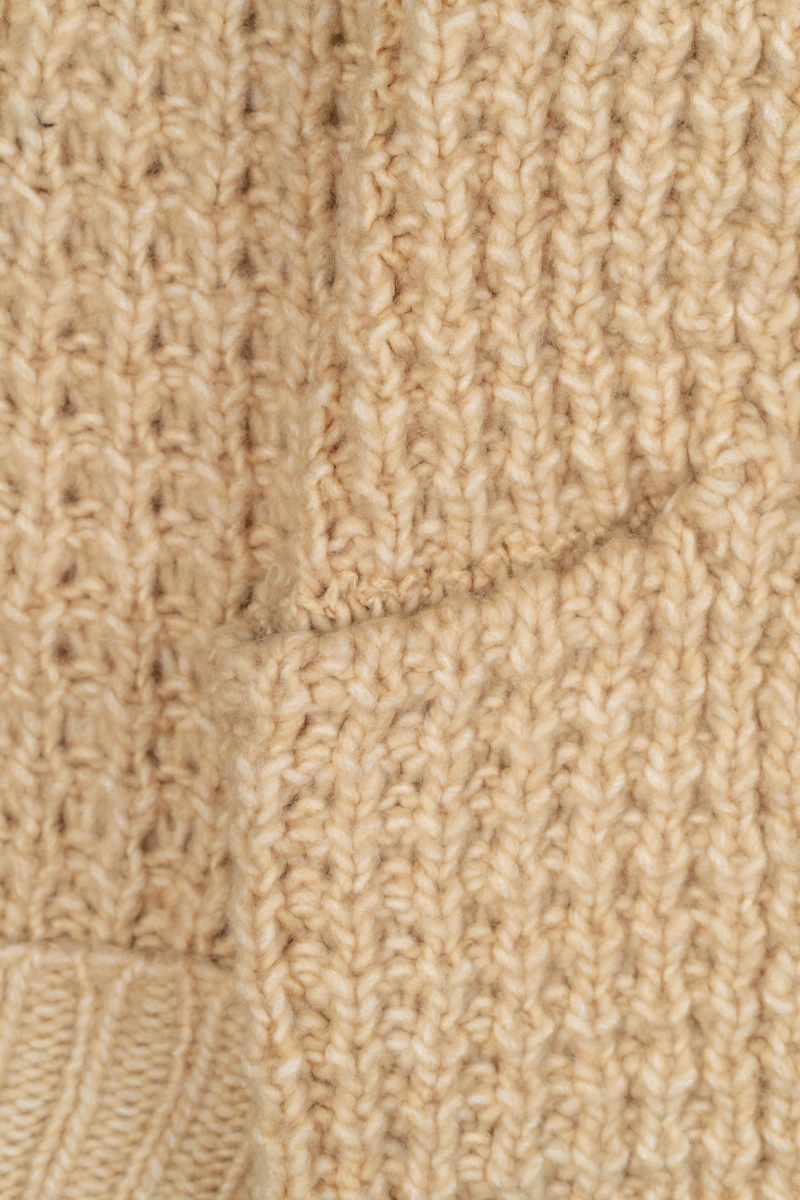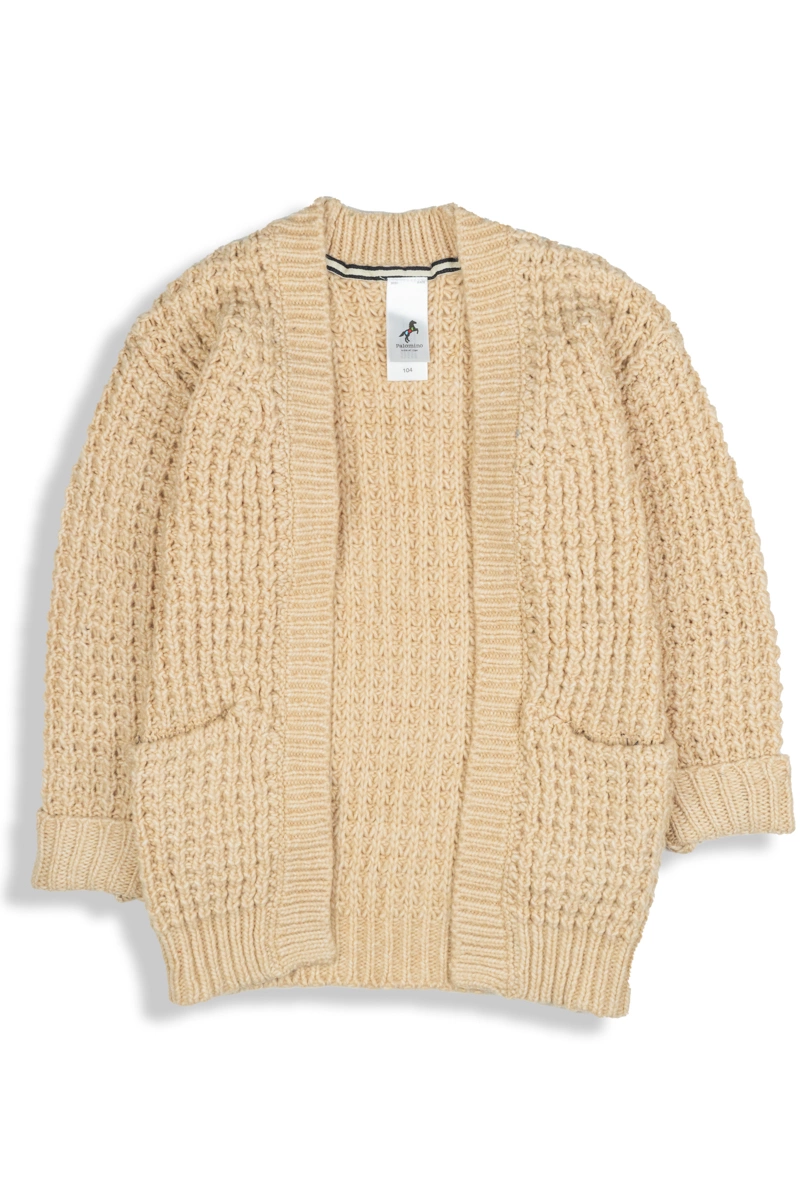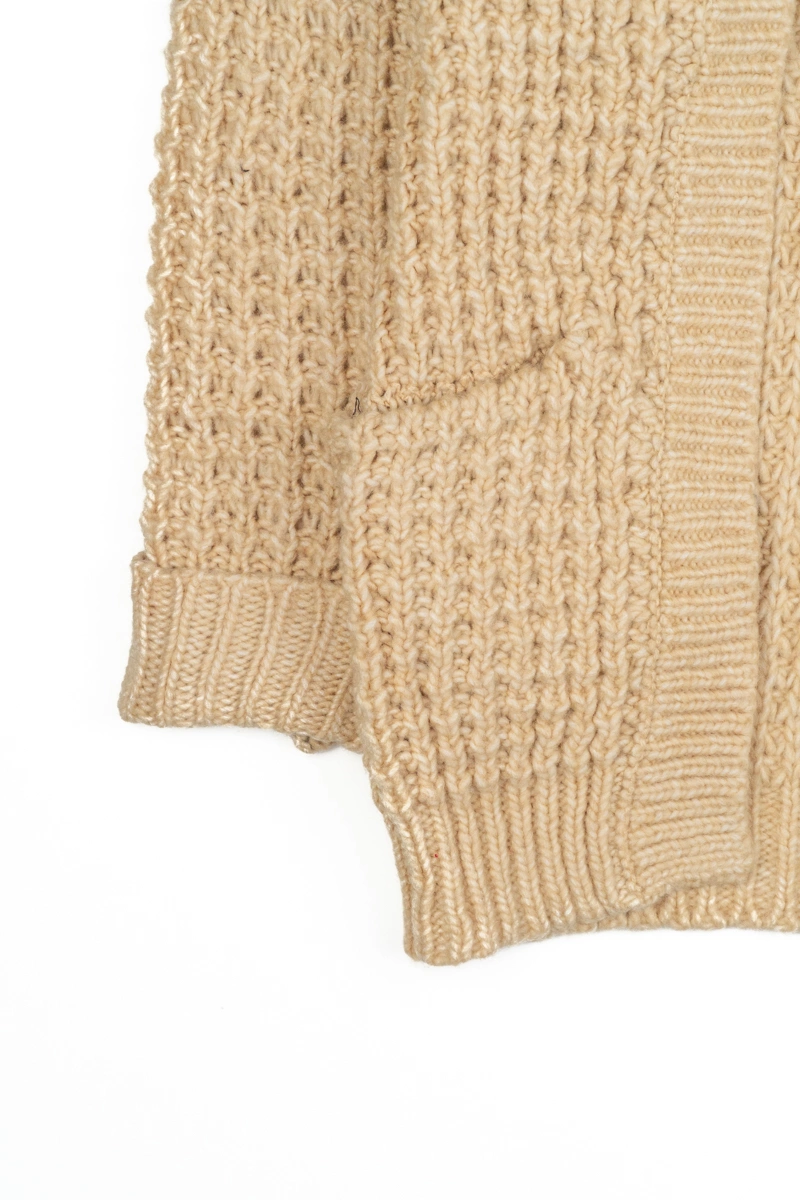 Dziana narzutka marki C&A. Miękka w dotyku dzianina w odcieniu beżowym. Open front (niezapinana). Z przodu posiada dwie kieszenie. Rękawy długie, podwinięte na zakończeniach. Rękawy oraz dół narzuty zakończone splotem, wyglądem przypominającym ściągacz.