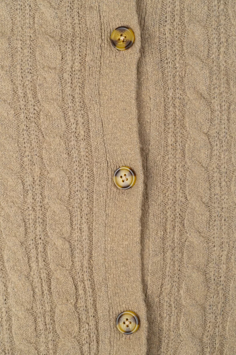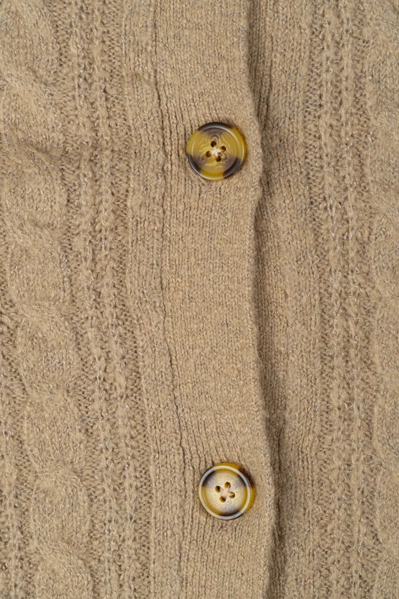 Camel Sweter Kardigan w Warkocze
