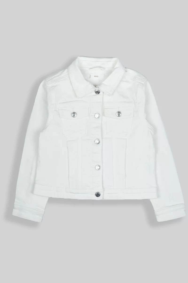 Dziewczęca Bawełniana Biała Jeansowa Kurtka Katana