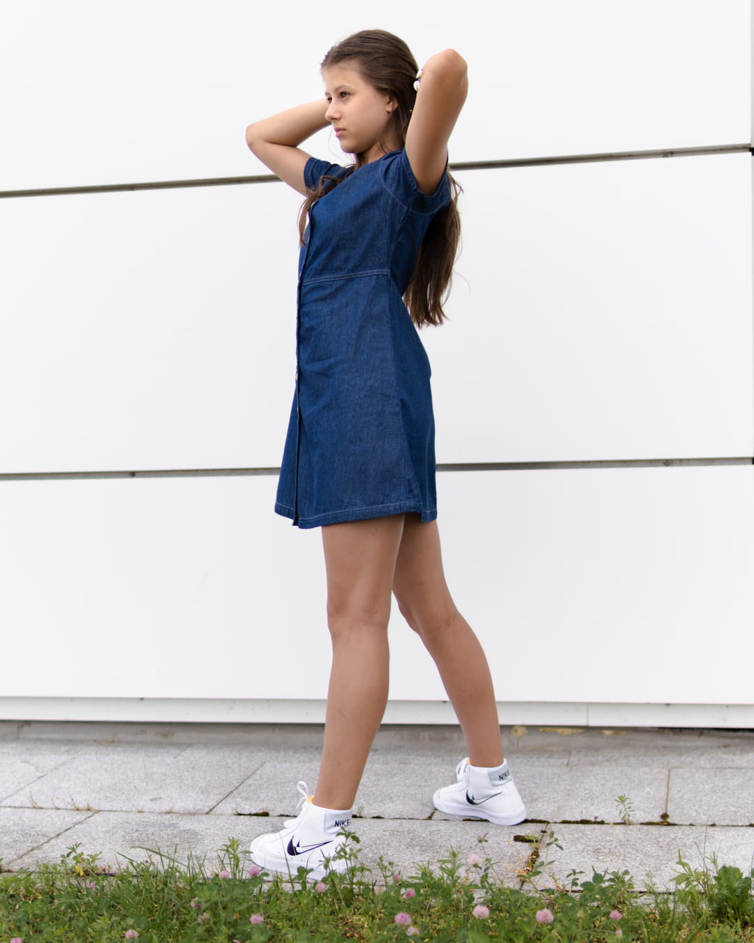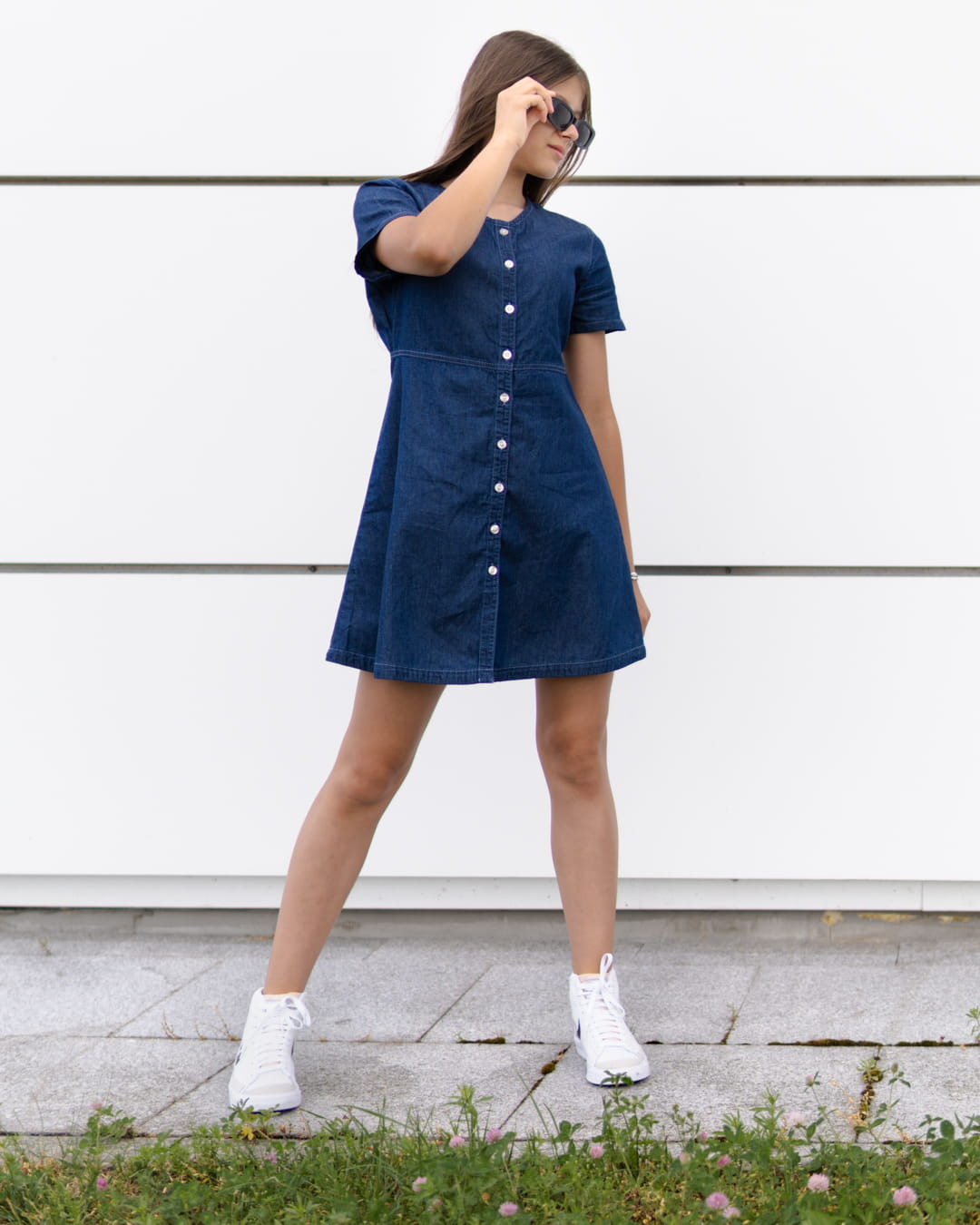 George Ciemna Jeansowa Dziewczęca Sukienka na Guziki