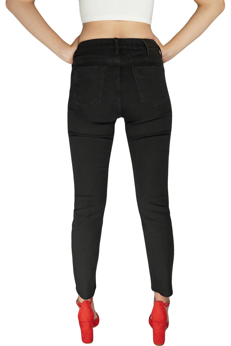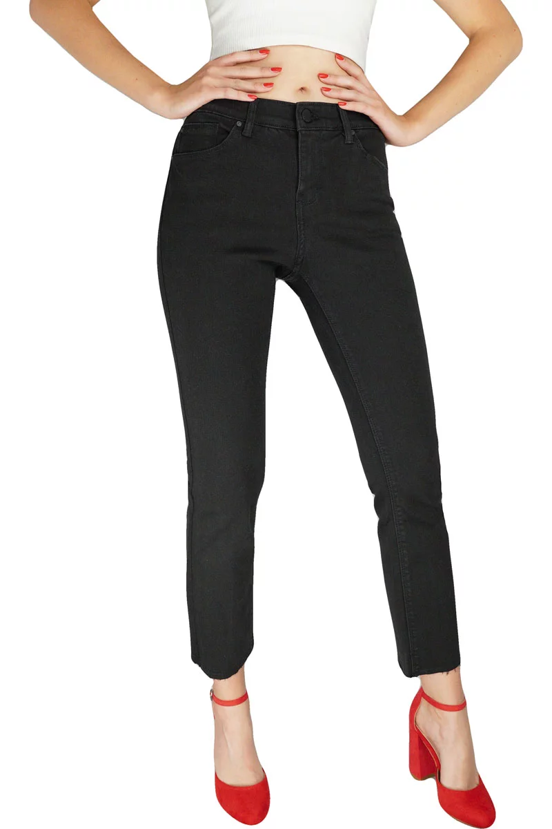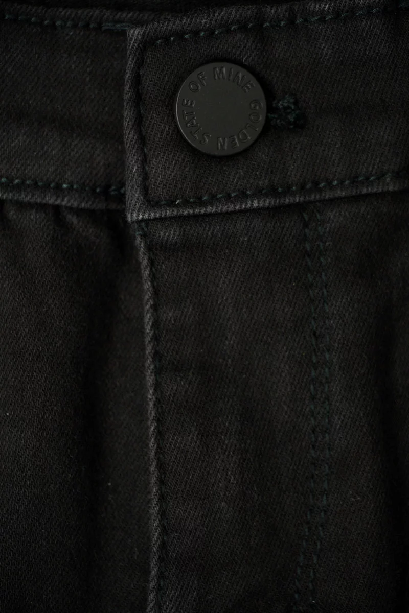 Jeansy marki Golden State Of Mine w kolorze czarnym. Zapinane na zamek i guzik. Z przodu dwie kieszenie i jedna mała kieszeń oraz dwie kieszenie z tyłu. Nogawki na zakończeniach delikatnie postrzępione. Długość do kostek. W pasie wszyte szlufki.