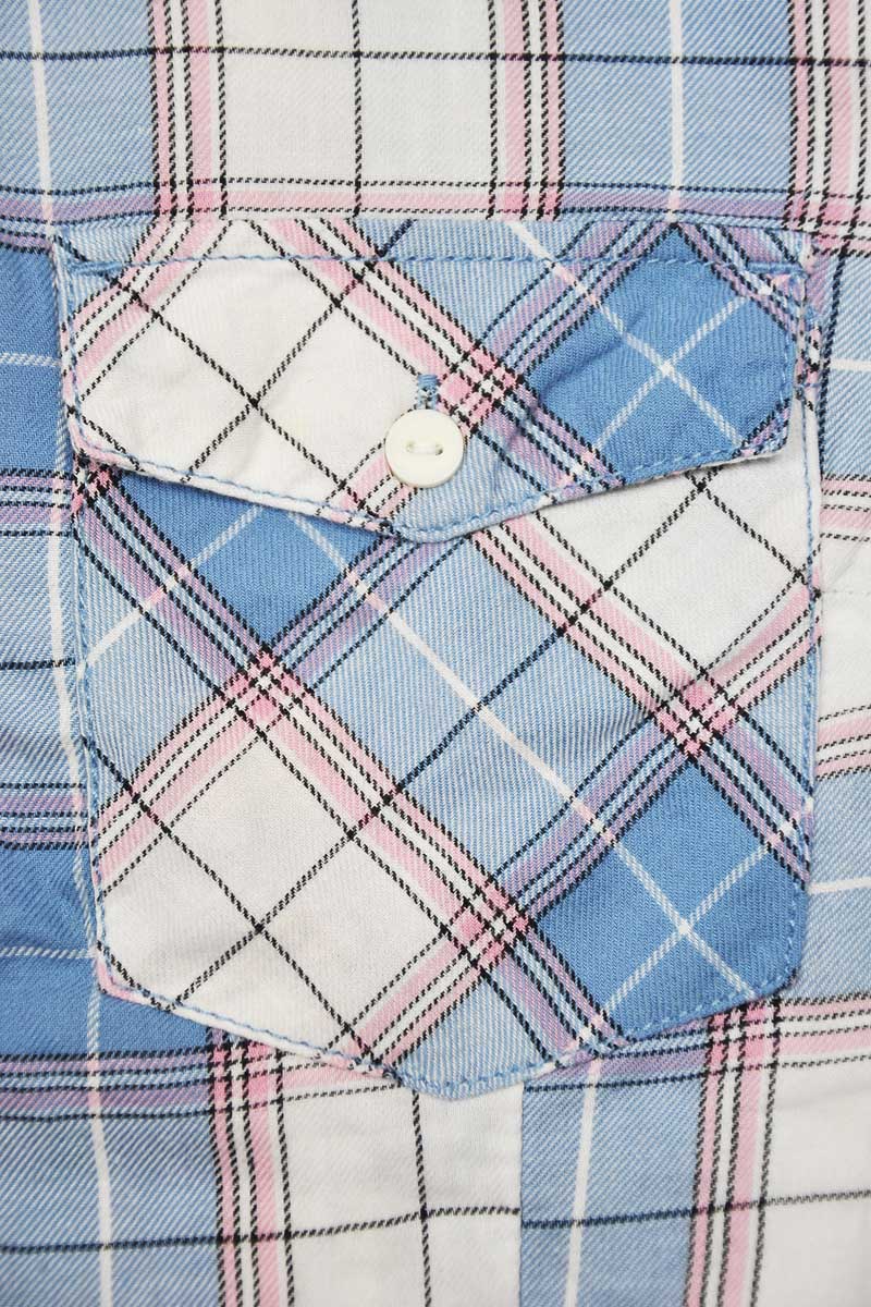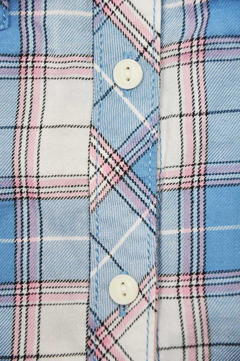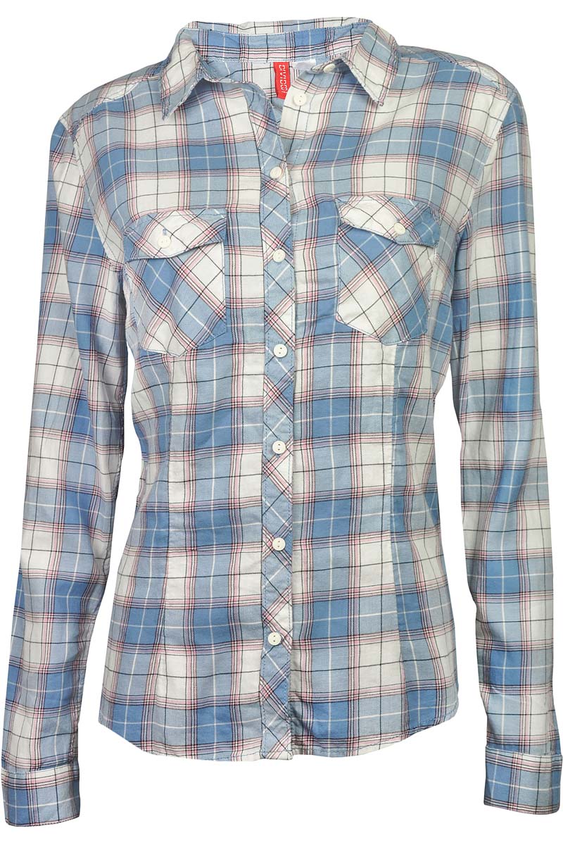 Koszula marki H&M w wielokolorową kratę (dominują odcienie błękitu, bieli, różu). Na długi rękaw. Z przodu zapinana na guziki. Zakończenia rękawów zapinane na dwa guziki. Koszula z kołnierzykiem. Z przodu posiada dwie kieszenie zapinane na guzik. Materiał miły w dotyku i wysokogatunkowy.