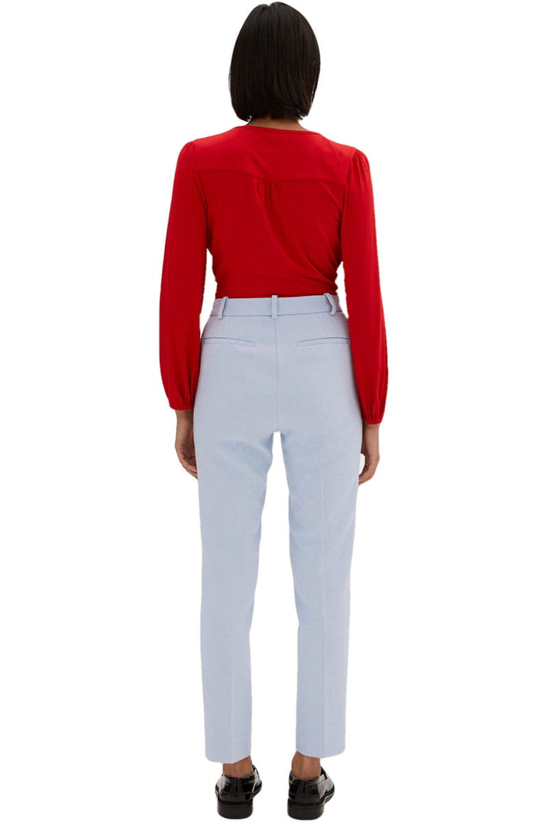 Spodnie/Chinosy marki M&S w odcieniu błękitnym. Długość Regular. Zapinane na zamek, krytą haftkę i guzik. W pasie wszyte szlufki. Z przodu posiadają dwie głębokie kieszenie i dwie kieszenie z tyłu. Spodnie o średnim stanie. Nogawki zwężane, z niewielkim rozcięciem u dołu materiału. Długość do kostek. Materiał wysokogatunkowy.