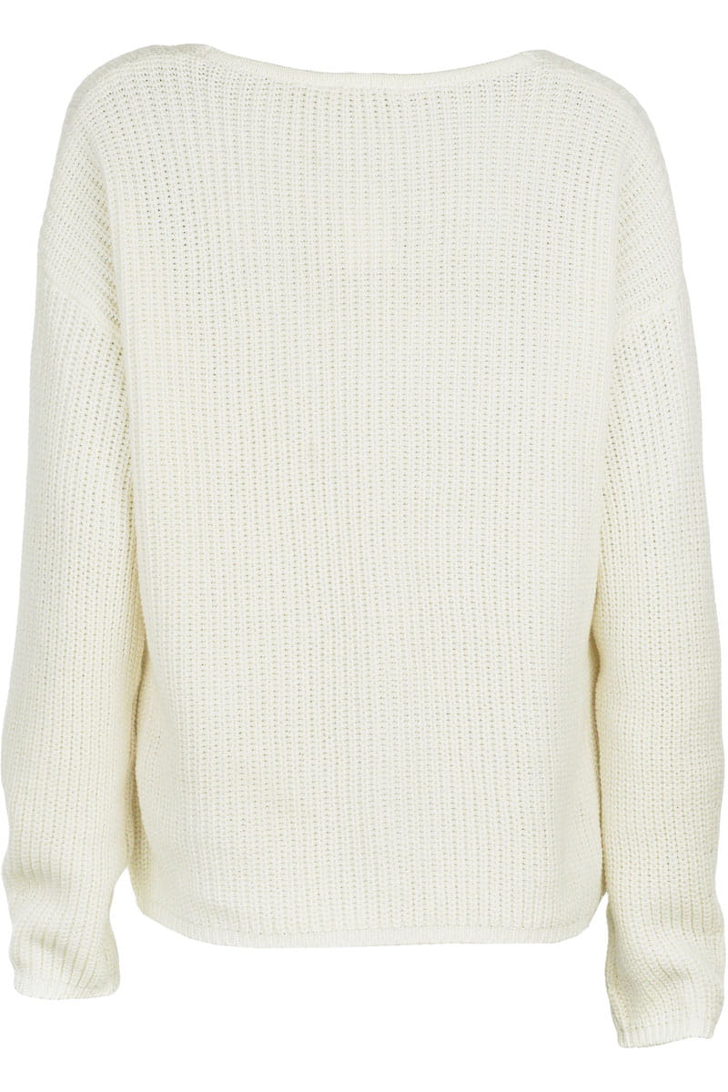 Nutmeg Dzianinowy Ecru Sweter V-Neck z Ekologicznej Bawełny