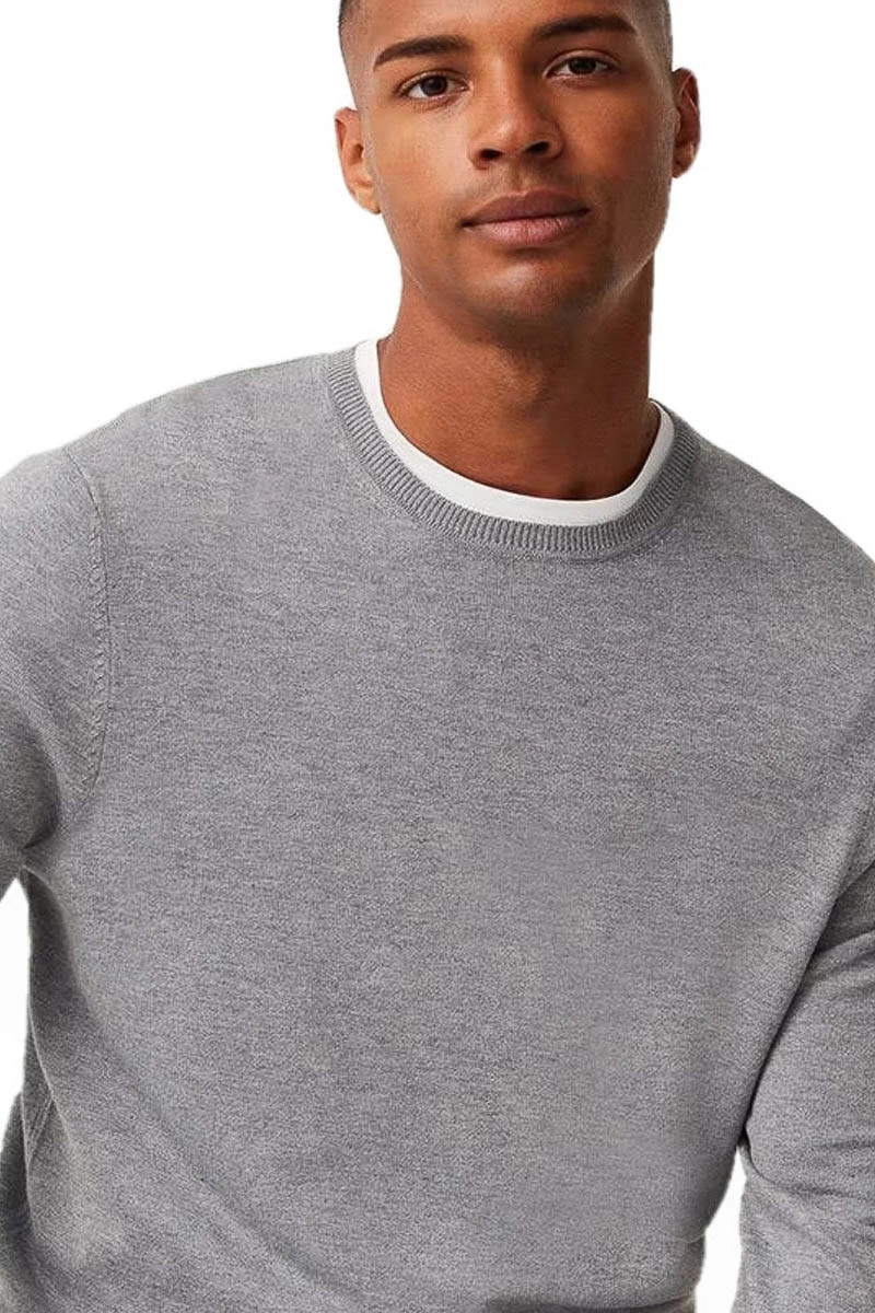 Męski, gładki sweter marki OVS w odcieniu szarym. Dekolt okrągły. Rękawy długie. Dół swetra i rękawy zakończone ściągaczem. Materiał miły w dotyku.