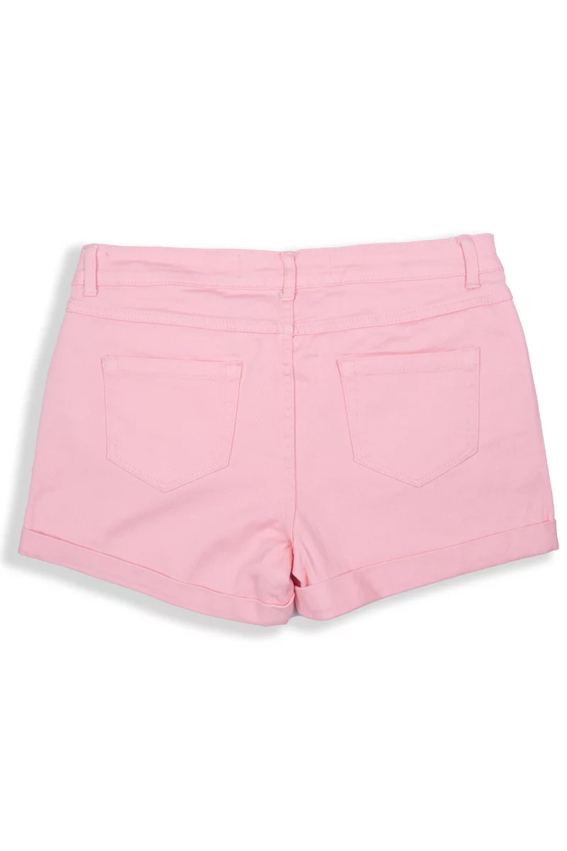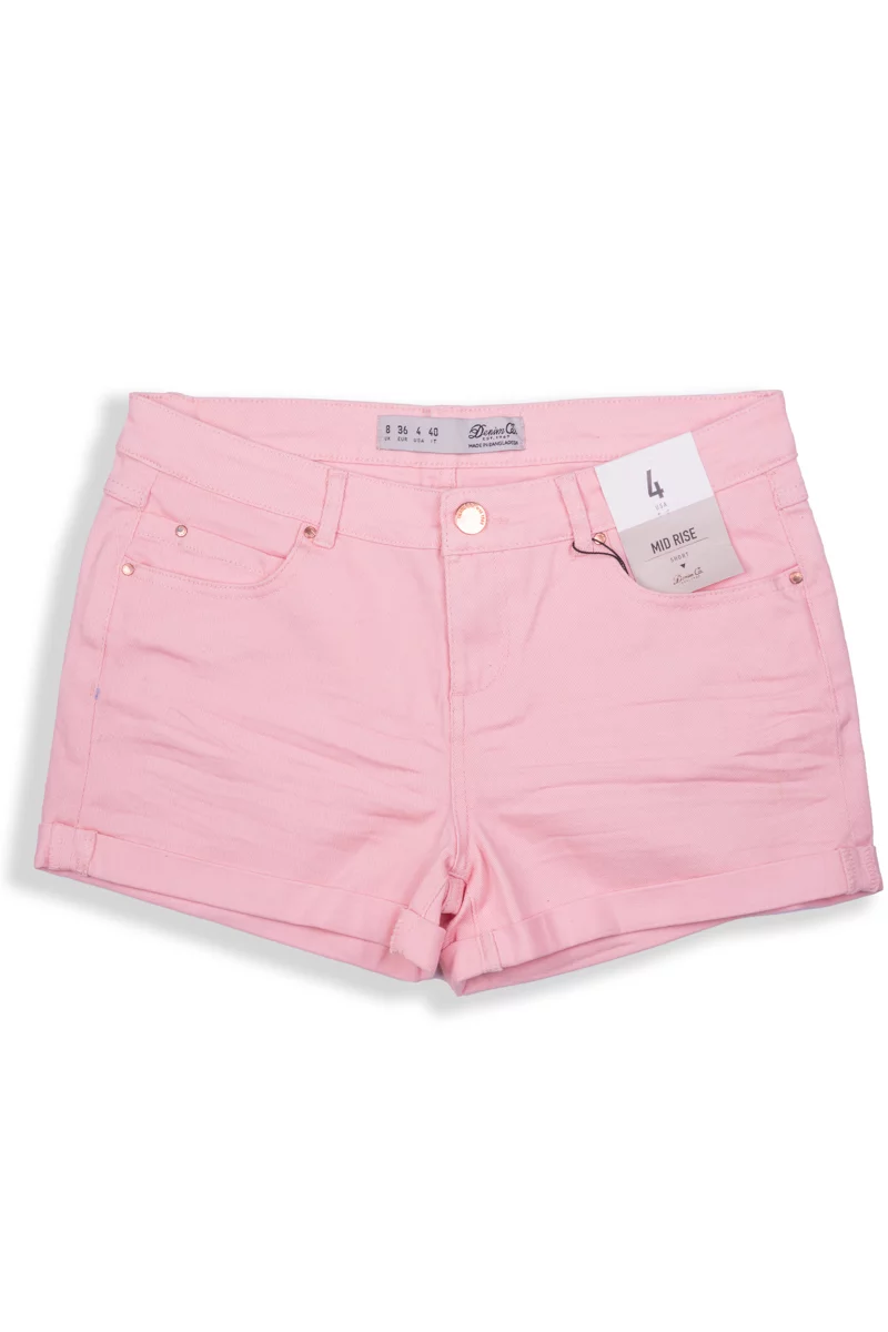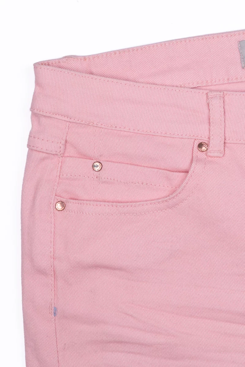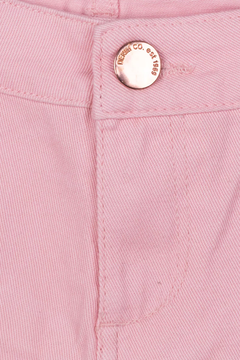 Krótkie jeansowe spodenki firmy Denim Co. (dla Primark) w odcieniu pudrowego różu. Zapinane na guzik i zamek. W pasie szlufki. Z przodu posiada dwie głębokie kieszenie, jedną małą kieszeń oraz dwie kieszenie z tyłu. Nogawki podwinięte. Wysokość pasa - średnia.