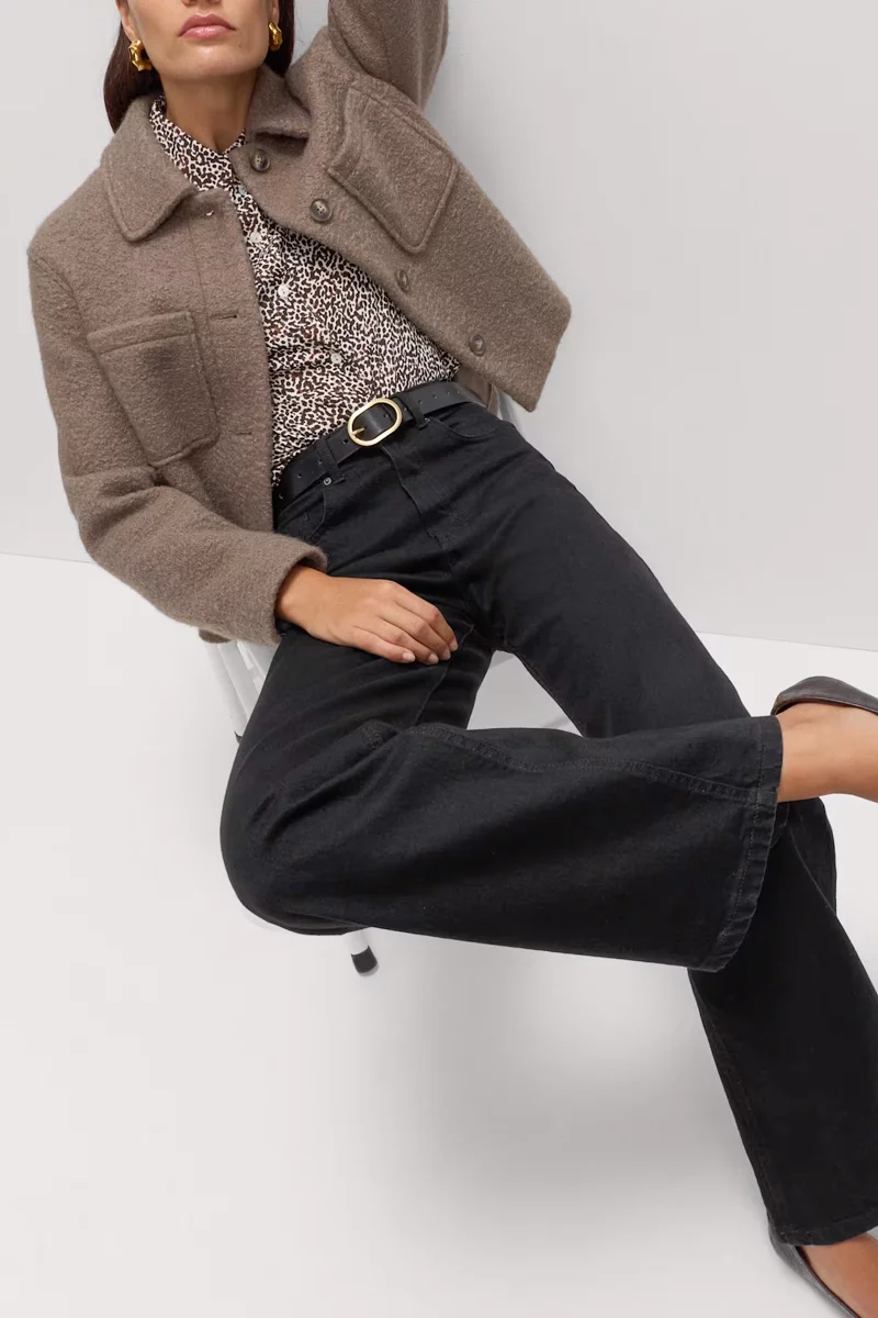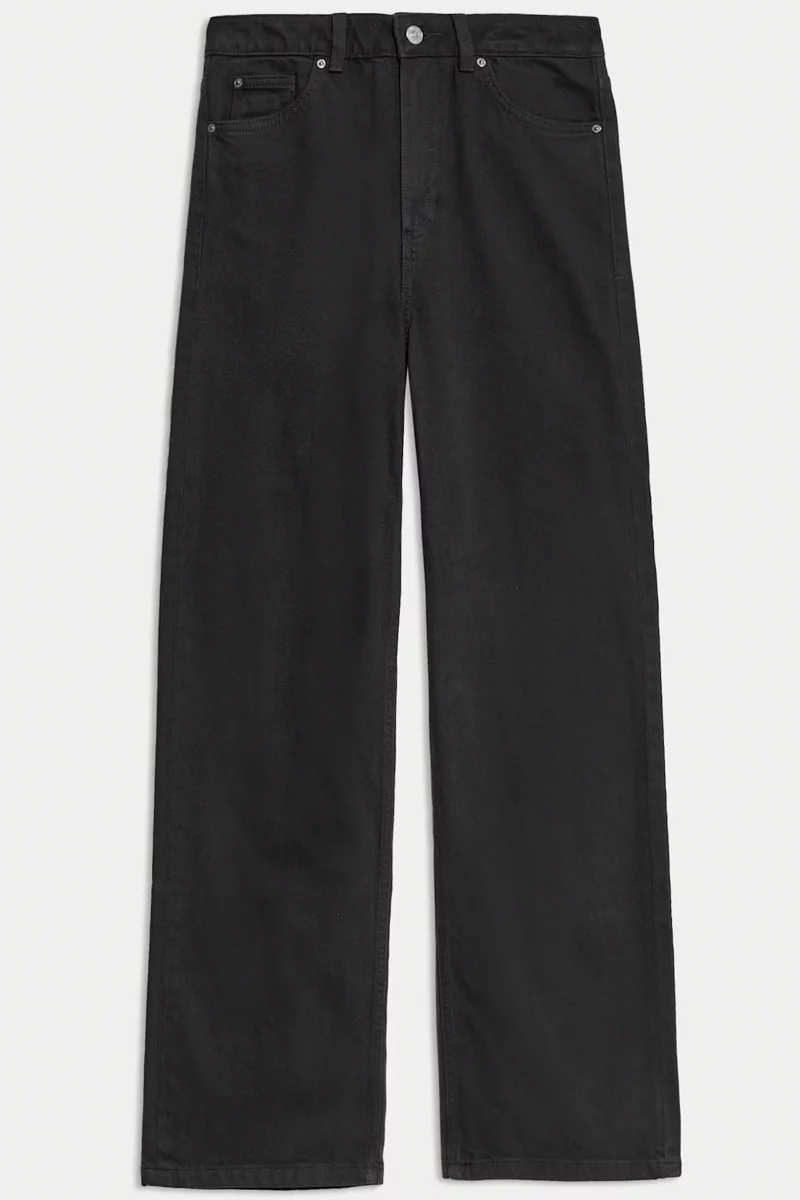 Jeansy firmy Marks&Spencer w kolorze czarnym. Długość Short. Model Wide (szerokie nogawki). Jeansy, wykonane z mieszanki wysokiej jakości materiałów. Zapinane na zamek i guzik. Wysoki stan, podkreśla talię i optycznie wydłuża nogi, a luźne nogawki zapewniają komfort i swobodę ruchów przez cały dzień. Szlufki w pasie. Z przodu dwie głębokie kieszenie, jedna mała kieszeń oraz dwie kieszenie z tyłu. Wysokiej jakości denim (bawełna z dodatkiem elastanu).