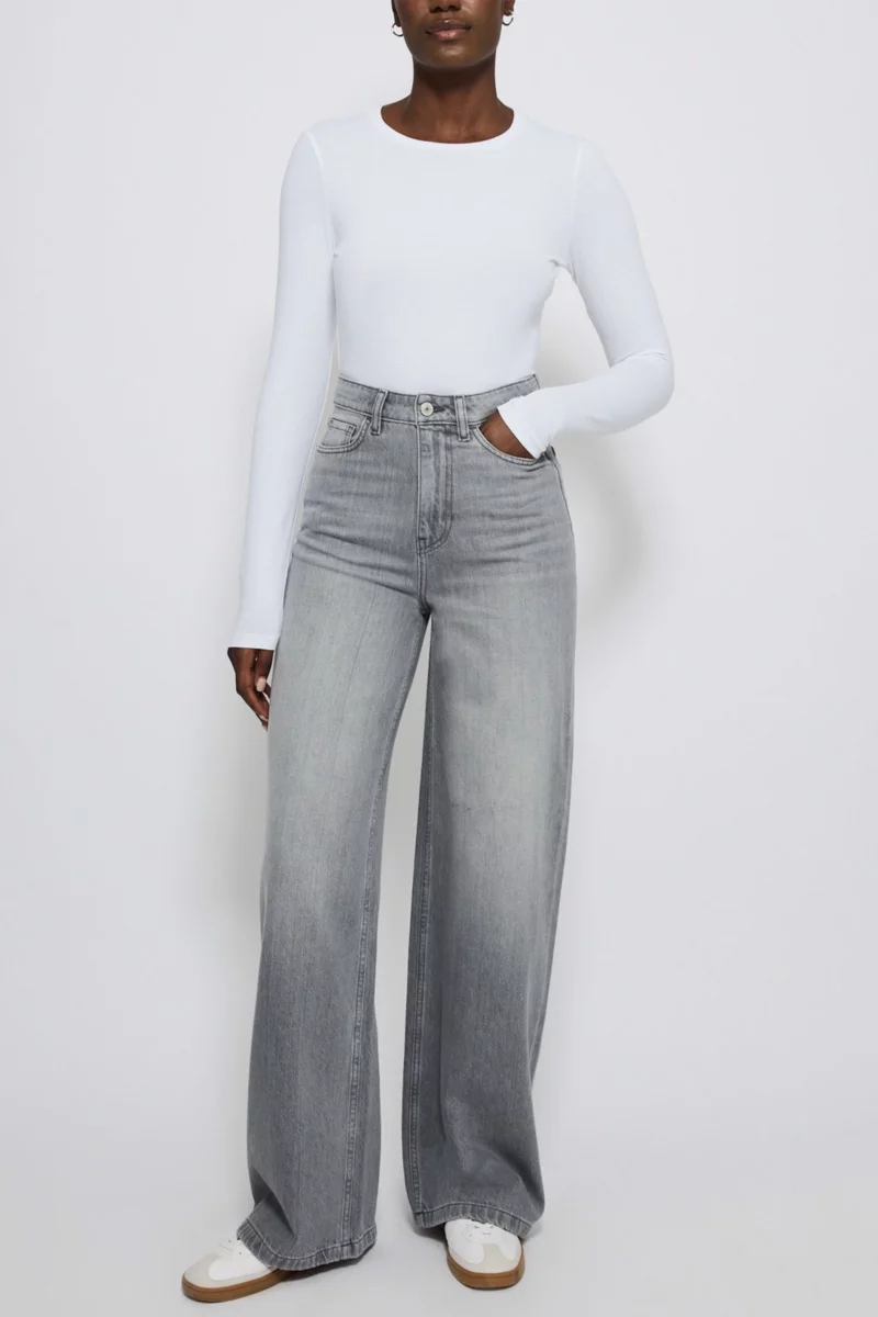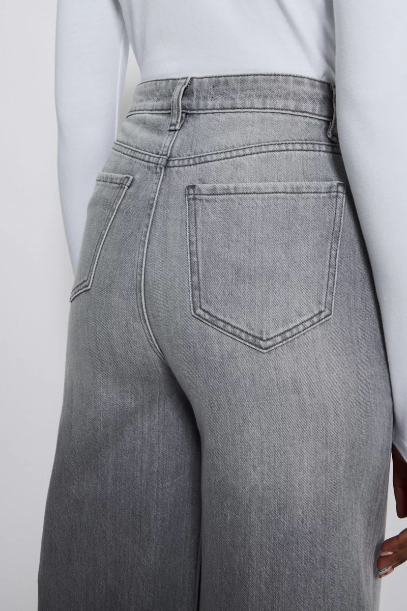 Szerokie Szare Jeansy Spodnie Wide, Long