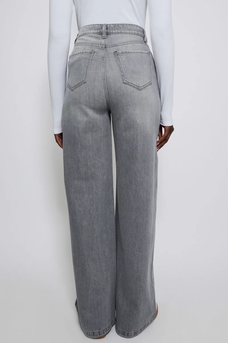Szerokie Szare Jeansy Spodnie Wide, Regular