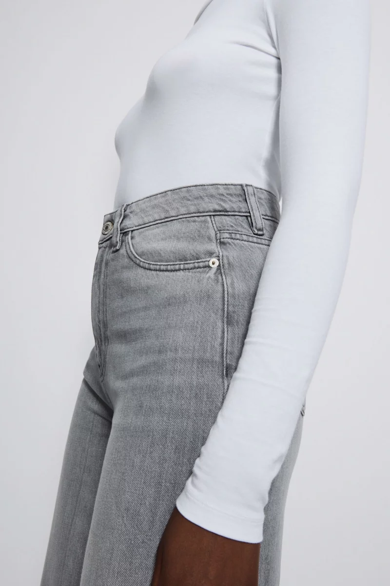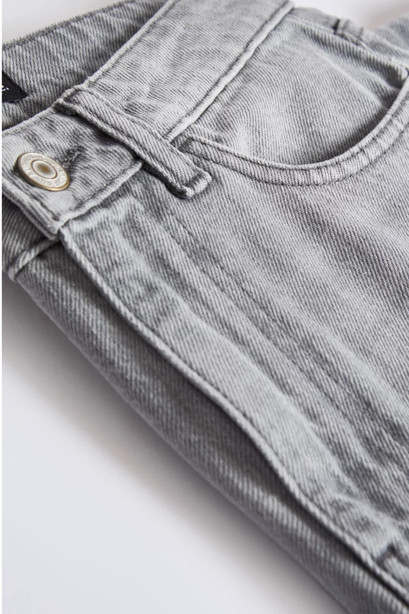 Jeansy firmy George w odcieniu szarym z modnym efektem delikatnego sprania (efekt "acid wash" / "vintage"), co nadaje spodniom charakteru. Długość Regular. Model Wide (szerokie nogawki), nadaje sylwetce nowoczesny wygląd i zapewnia pełną swobodę ruchów. Wysokiej jakości denim z serii "Fashion Fit", który jest wytrzymały, a jednocześnie przyjemny dla skóry. Wykonane z bawełny, która sprawia, że spodnie trzymają swój fason, są niezwykle odporne na przecieranie. Spodnie zapinane na metalowy, sygnowany guzik oraz zamek błyskawiczny. Wysoki stan, podkreśla talię, optycznie wydłuża nogi i zapewnia komfortowe dopasowanie w pasie. Szlufki w pasie pozwalające na stylizację z ulubionym paskiem. Z przodu dwie głębokie kieszenie, jedna mała kieszeń oraz dwie kieszenie z tyłu.