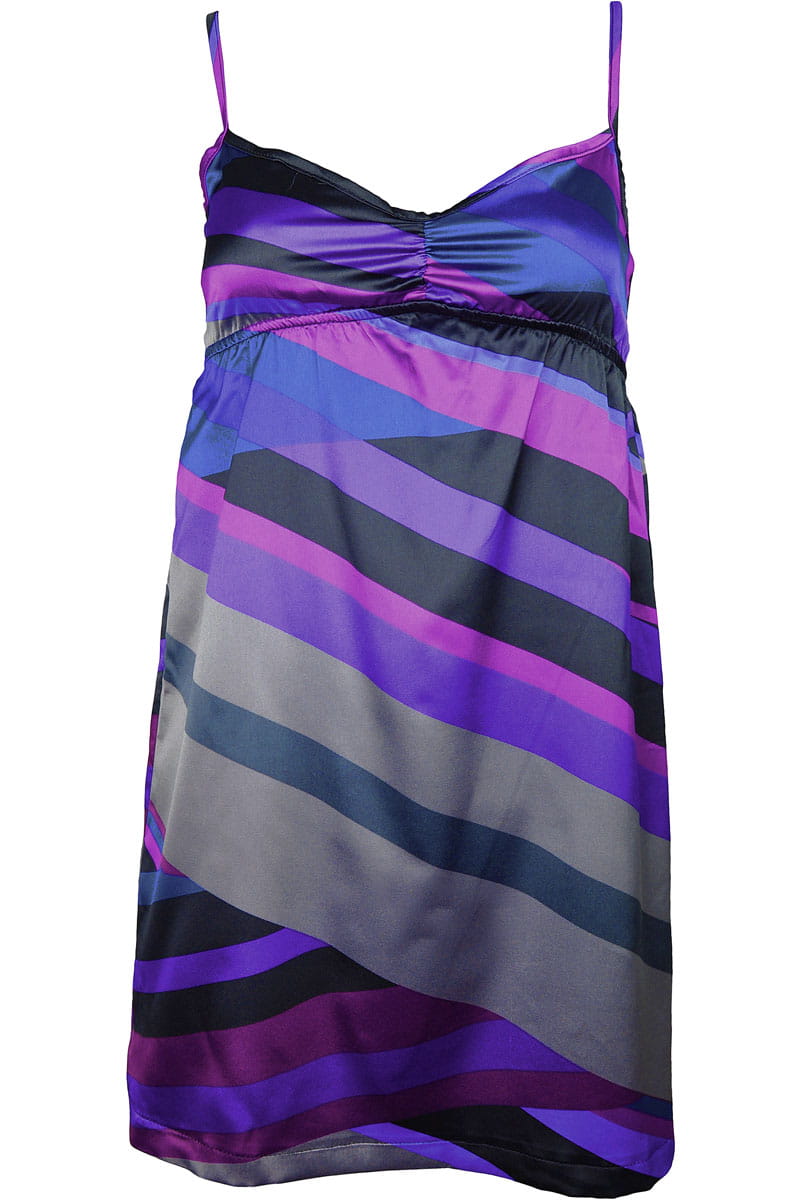 Tunika firmy TopShop. Tunika uszyta z satynowego, wielokolorowego materiału. Z tyłu na plecach ma wszytą gumkę, dzięki której dopasowuje się do sylwetki. Odcinana pod biustem. Tunika na cienkich, regulowanych ramiączkach. Materiał lekki i przewiewny.