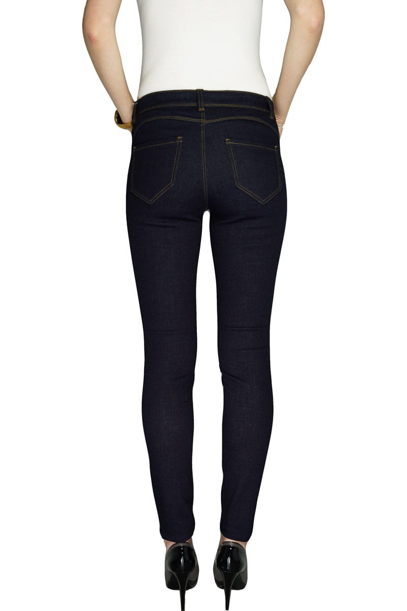 Jeansy firmy United Colors of Benetton w odcieniu ciemnego jeansu. Rurki. Nogawki długie. Jeansy o średnim stanie. W pasie wszyte szlufki. Zapinane na guzik i zamek. Z przodu dwie kieszenie i jedna mała oraz dwie kieszenie z tyłu.