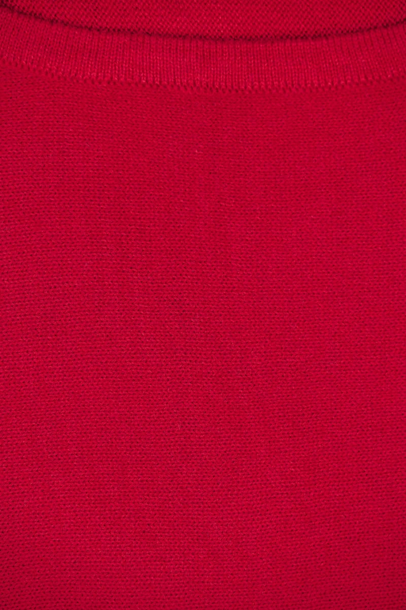 Sweter firmy Yours w odcieniu czerwonym. Dekolt okrągły. Na długi rękaw, zakończony prążkowanym materiałem. Asymetryczny - o lekko dłuższym tyle. Sweter po bokach posiada wstawki z prążkowanego materiału. Dół swetra zakończony ściągaczem.