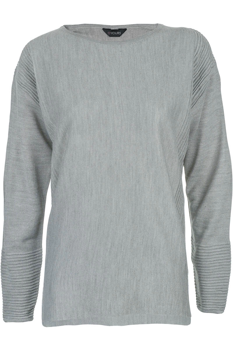 Yours Szary Sweter z Prążkowanymi Wstawkami, Plus Size