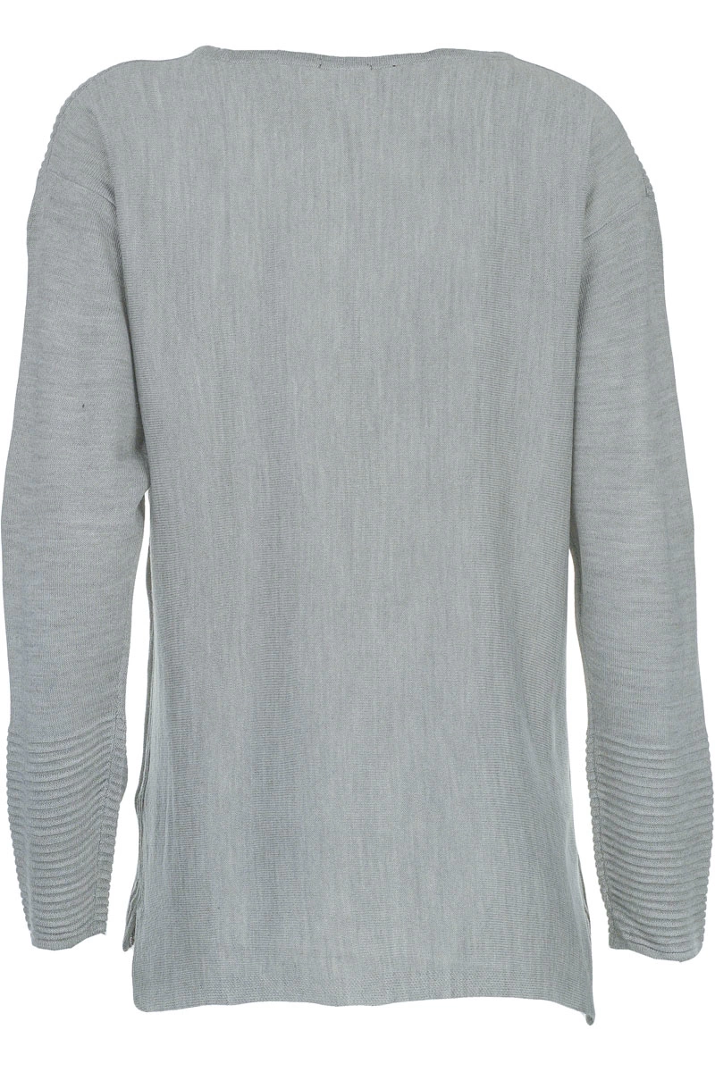 Sweter firmy Yours w odcieniu szarym. Dekolt okrągły. Na długi rękaw, zakończony prążkowanym materiałem. Asymetryczny - o lekko dłuższym tyle. Sweter po bokach posiada wstawki z prążkowanego materiału. Dół swetra zakończony ściągaczem.